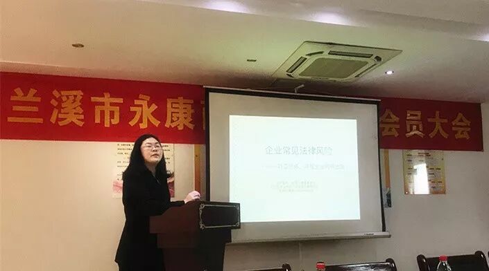4月12日下午,兰溪市永康商会二届二次会员大会在兰溪市赤溪街道金秋岗工业园区召开。出席本次大会的有中共兰溪市委常委、统战部长吴一成;兰溪市人民政府副市长胡作滔;兰溪市政协副主席、工商联主席叶小虎;中共兰溪市委统战部副部长、工商联党组书记金辉;兰溪市工商联党组成员洪瑞及兰溪市永康商会58家会员企业代表。会上,法道衡平律师团队吴丽红律师应邀为商会企业代表作企业法律风险防范主题讲座。