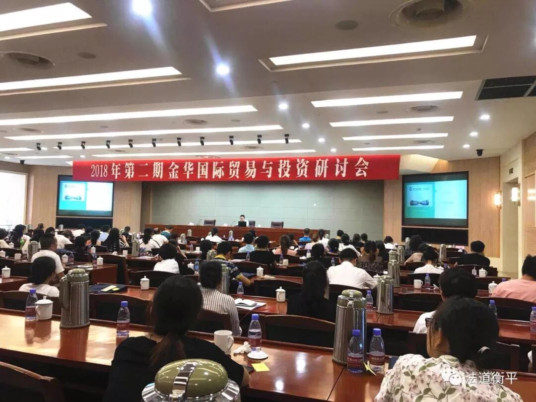 8月8日,金华市贸促会在市文化中心举办2018年第二期国际贸易与投资研讨会。本期会议主题为“促进国际贸易投资多元化和便利化”。会议由金华市贸促会专职副会长金正锋主持;金华市商务局党组副书记、副局长郭忠明,金华市贸促会副会长陆献龙参加本次会议。各县(市、区)商务主管部门,各县(市)贸促会、国际商会分管领导,金华全市重点外贸企业高层管理人员近200人参加了会议。中国贸促会商事认证中心商事证明处处长张瀚蓉、中国贸促会商事认证中心原产地证处副处长宁培、金华海关副关长陈峻、北京盈科(金华)律师事务所法道衡平团队朱挺律师等应邀为本次研讨会作主题演讲。